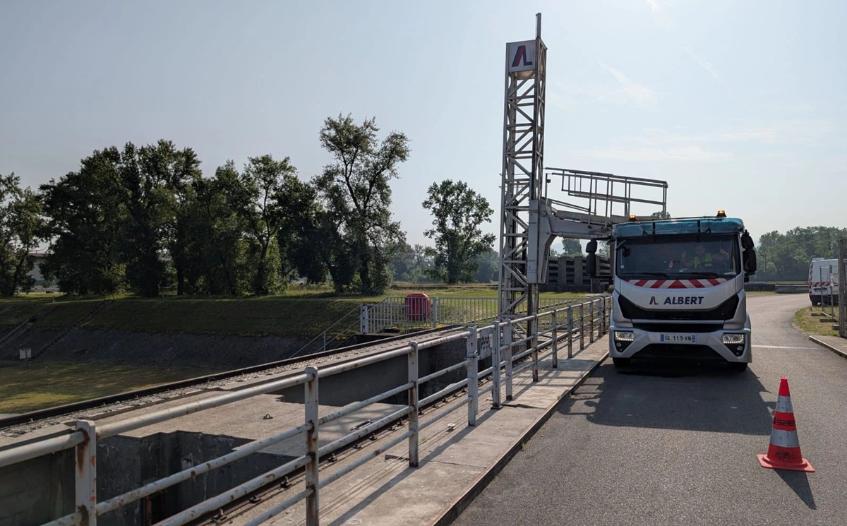 Jeudi 17 juillet 2025 Pose d'une passerelle de 22 m Pose de la passerelle TERTU Equipement à